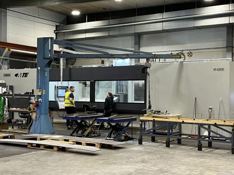 Det andra nyförvärvet är en bäddfräsmaskin av märket MTE KT-5200. Maskinen har ett arbetsområde på hela X 5000mm Y 1500mm Z 1500mm, motoreffekt på 40kw och 1085nm, fullt styrt fräshuvud som kan vrida i hela 360000 positioner.